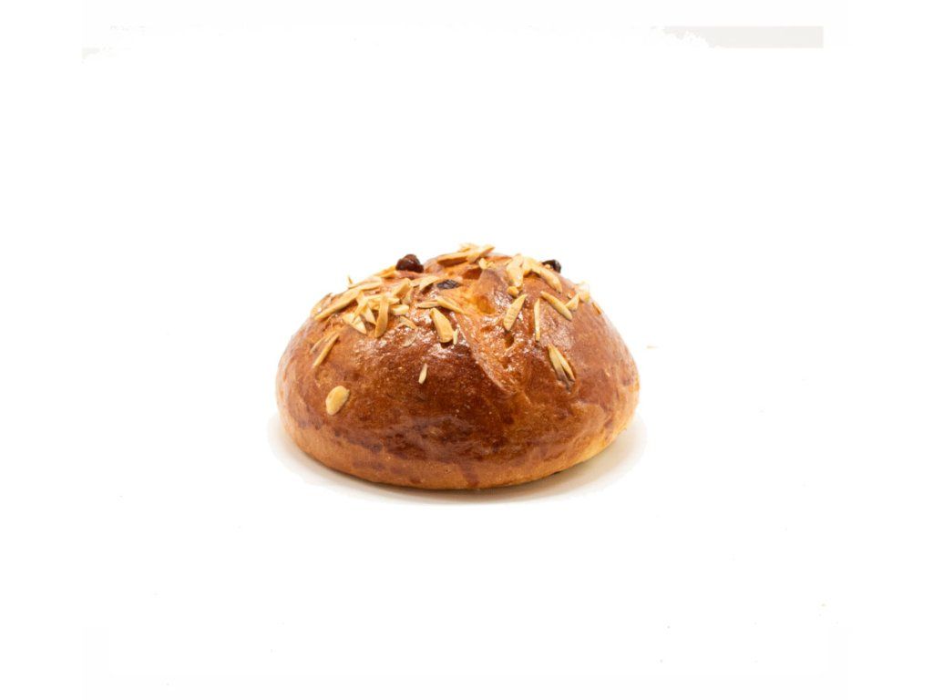 náš velikonoční mazanec v mini provedeníi 200g 3x kynutý, plný másla, rozinek a mandlí - i za tohoto prcka o velikosti větší burger bulky ručíme